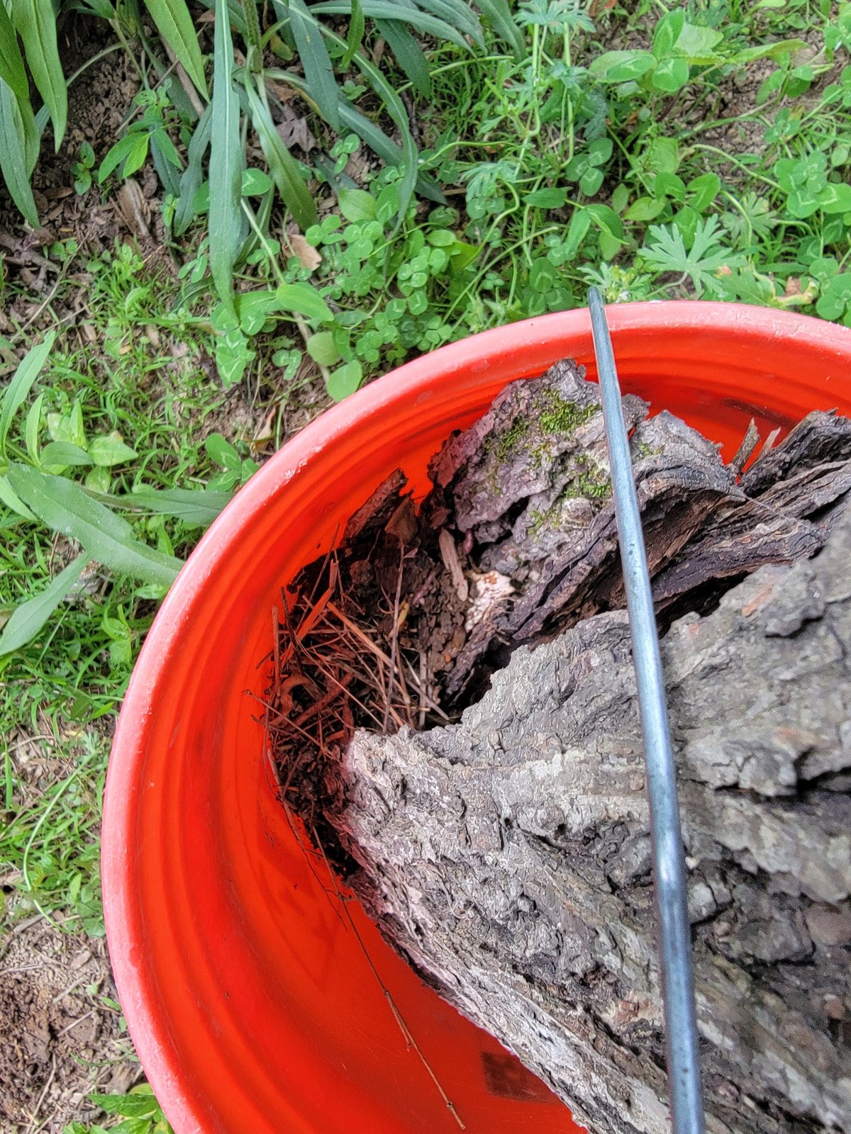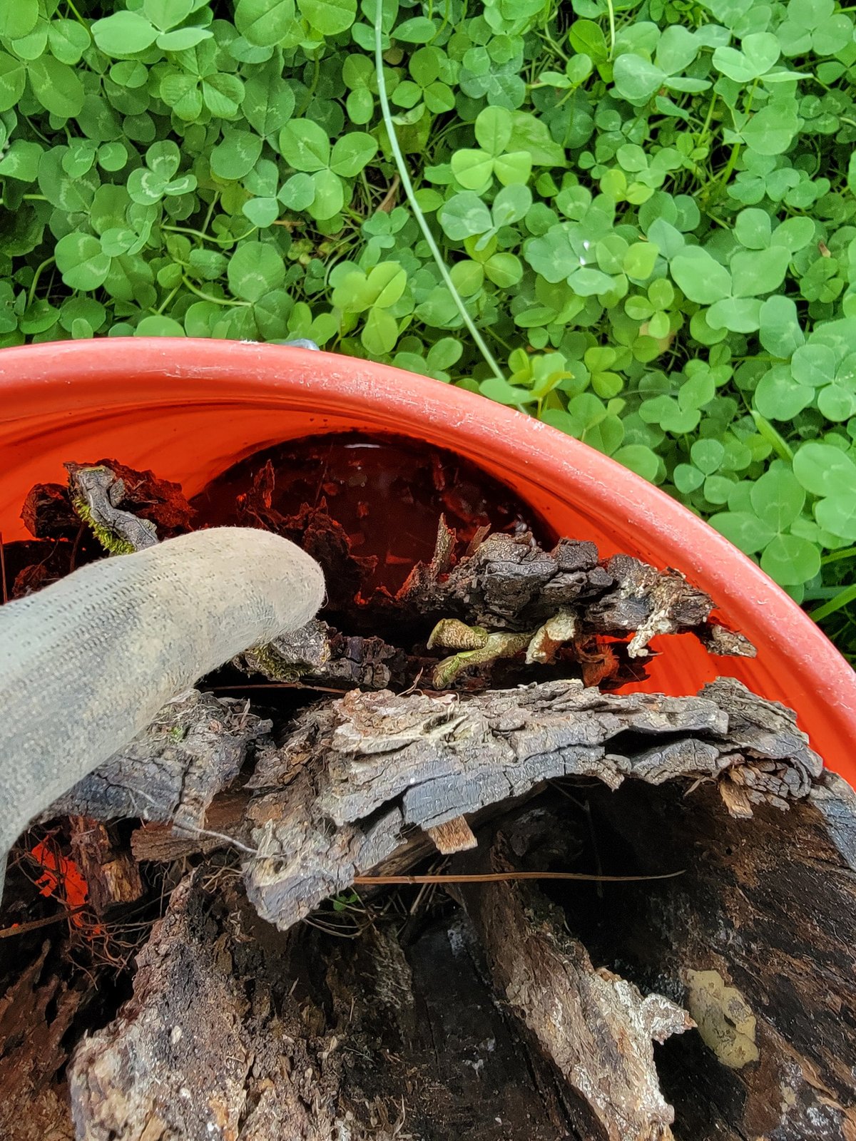 I keep it tucked in the shade, somewhere cool and quiet. Inside is a mix of bark, soft rotting wood, a little soil, and whatever forest floor debris I’ve gathered. Occasionally, I’ll splash a bit of water in to keep it damp, but otherwise I let it be.