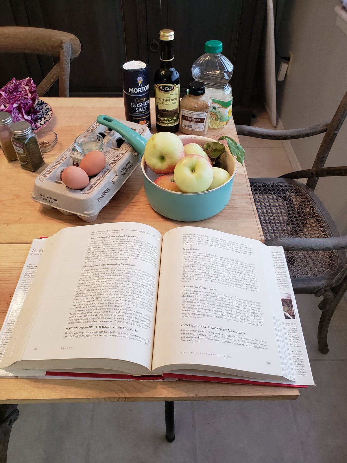In addition to trying my hand at a tart this year, I am also trying a Sauce Suedoise (Apple-horseradish mayonnaise) found in my all-time favorite book, Sauces, by James Peterson.