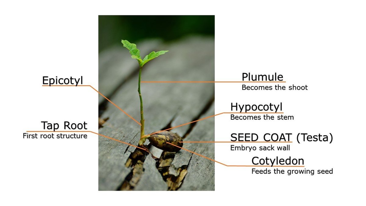 Anatomy of a seedling: We can seed the sed structures as they turn into a plant.